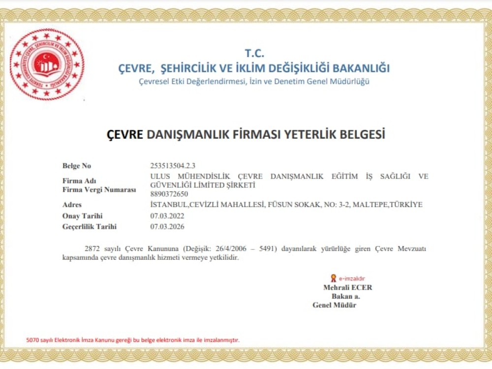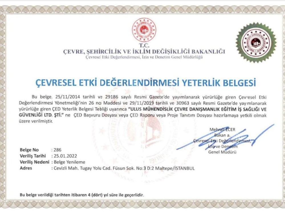 Çevre ve Şehircilik Bakanlığı tarafından ÇED Raporu hazırlama yeterliliğine sahip kuruluş olduk.